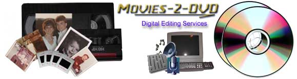 Our minimum order charge is $50. To evaluate our services, you may wish to send only representative sample of your project that meets the minimum charge. This is really the best method of evaluating how your media will look with our services. Describing our services here and over the telephone is educational, but we feel it best that you see and judge the quality for yourself. You should expect good quality from your VHS Camcorder tapes and even better quality from Digital8 movies converted to DVD by MOVIES-2-DVD. By ordering a small project, you will be able to validate that your systems (DVD players and Computers) will support our DVD-R and DVD media and formats. Digital encoding services for video, slide and photographs bridges the gap between past and future. Unlike analog recordings on film, paper, and tape, DVD preserves quality over time. Multiple DVD copies are the ideal method for long-term storage of your valuable video images. Our service provide a means to preserve your priceless collection of video, 35mm slides, and photographs from deterioration caused by time and the elements. One important advantage of digital media technology is that once the image has been converted to digital, duplicates with identical quality can be made at very reasonable prices. Thus, you can share these memories with your friends and family, and even have a backup copy for safe keeping. Advancements are being made rapidly in video processing techniques, computer power, and improved image rendering software. We look forward to being able to offer an increasing number of these capabilities. For these or other reasons, MOVIES-2-DVD reserves the right to revise the design and specifications of the Evaluation Package without notice. If you have a specific question or request, please do not hesitate to contact us via Email. We appreciate your input and business. |